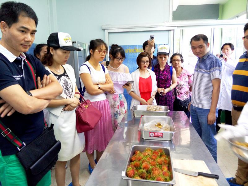 วันที่ ๑๘-๒๒ พฤษภาคม ๒๕๕๘ ดร.สมิท ธรรมเชื้อ กงสุล (ฝ่ายเกษตร) ประจำสถานกงสลุใหญ่ ณ นครกว่างโจว นำคณะผู้บริหารบริษัท Shenzhen the Orchard Industrial Development Co., Ltd. และ บริษัท Guangdong Greenland Agrifoods Co., Ltd ดูงานสวนทุเรียนพันธุ์ใหม่ของไทย พันธุ์จันทบุรี ๑-๖ พร้อมกับมีการหารือการซื้อ-ขายกับเกษตรกรโดยตรง ศึกษาดูงานโรงคัดบรรจุทุเรียนเพื่อการส่งออกและโรงงานผลิตทุเรียนแช่แข็งของไทย รวมถึงดูงานของสำนักวิจัยและพัฒนาการเกษตร เขตที่ ๖ กรมวิชาการเกษตร และการตรวจสอบศัตรูพืชในทุเรียนก่อนการส่งออกที่ด่านท่าเรือแหลมฉบัง