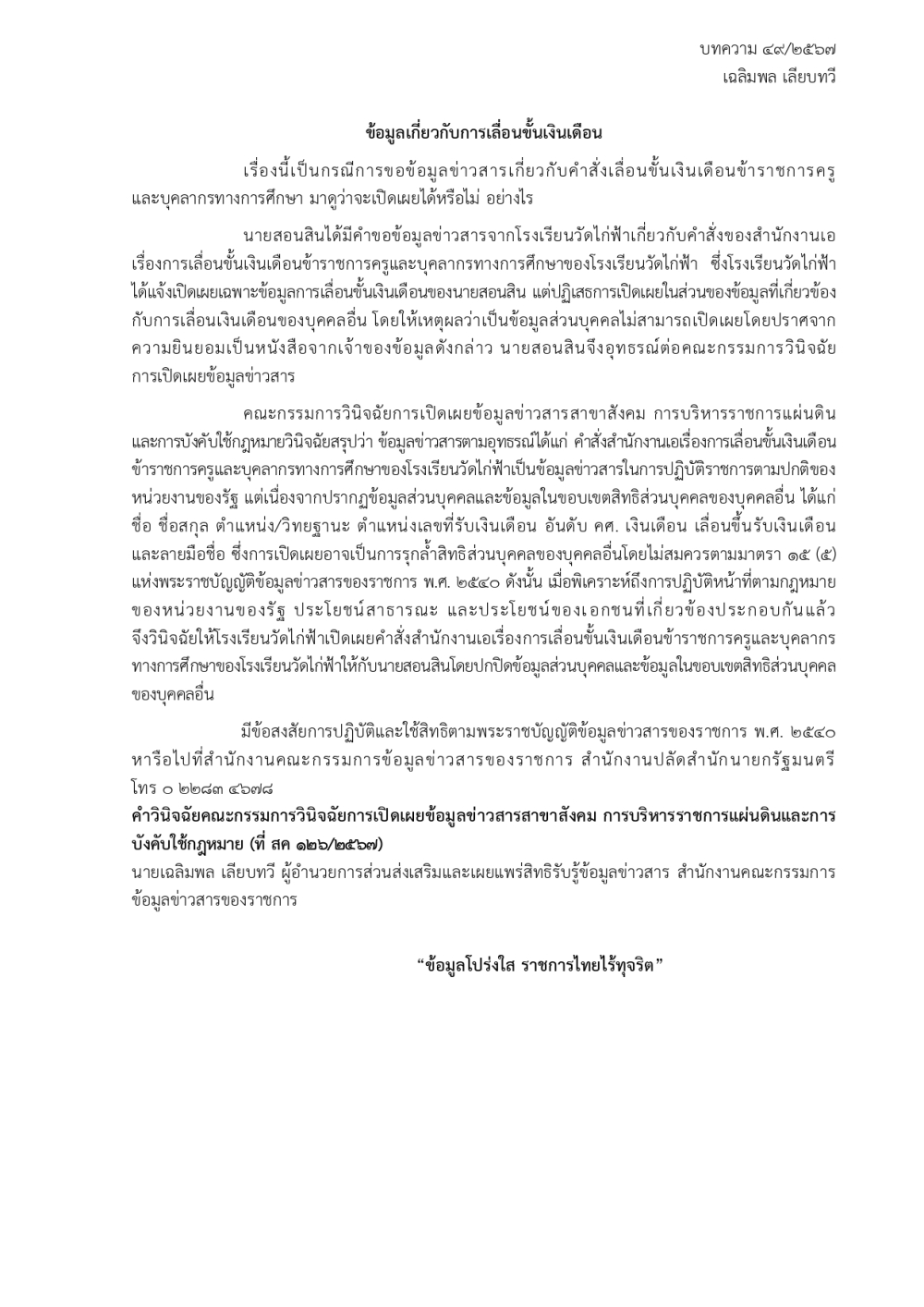 บทความเกี่ยวกับพรบ.ข้อมูลข่าวสารของราชการ พ.ศ. ๒๕๔๐ เดือน ตุลาคม 2567