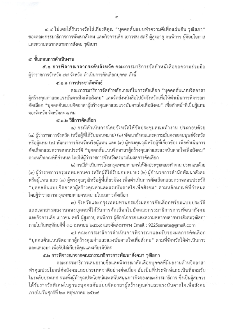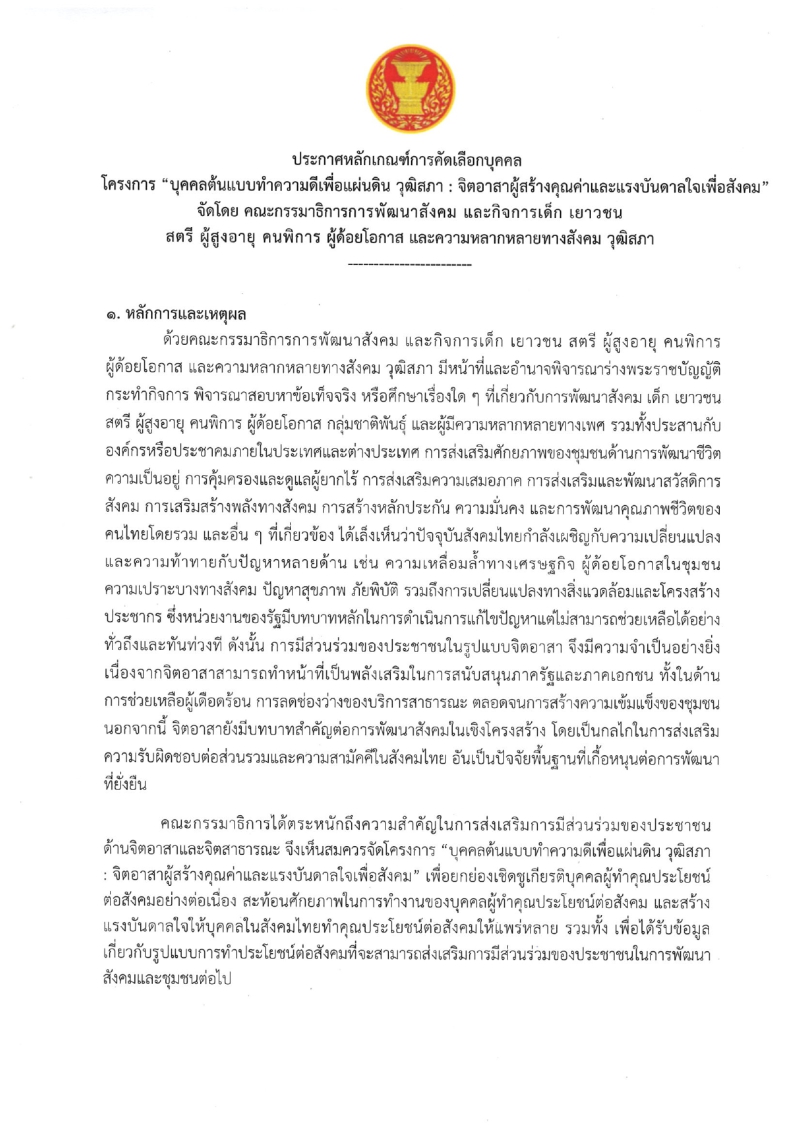 สำนักงานพัฒนาสังคมและความมั่นคงของมนุษย์จังหวัดกาฬสินธุ์ รับสมัครคัดเลือก "บุคคลต้นแบบทำความดีเพื่อแผ่นดิน วุฒิสภา" ผู้สนใจจัดส่งประวัติและข้อมูลบุคคลที่เสนอเข้ารับการคัดเลือก ได้ที่สำนักงานพัฒนาสังคมและความมั่นคงของมนุษย์จังหวัดกาฬสินธุ์ ภายในวันที่ 15 มีนาคม 2569 หรือทาง E-Mail : laddakuna1234@gmail.com