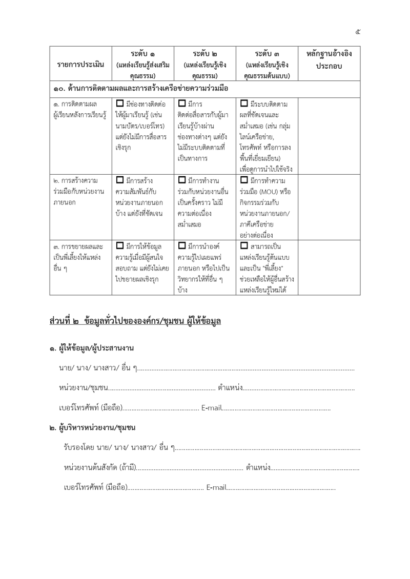 แบบเสนอผลงานเพื่อเข้ารับพิจารณาคัดเลือกเป็น“แหล่งเรียนรู้เชิงคุณธรรม” ภายใต้การขับเคลื่อนจังหวัดคุณธรรมจังหวัดกาฬสินธุ์