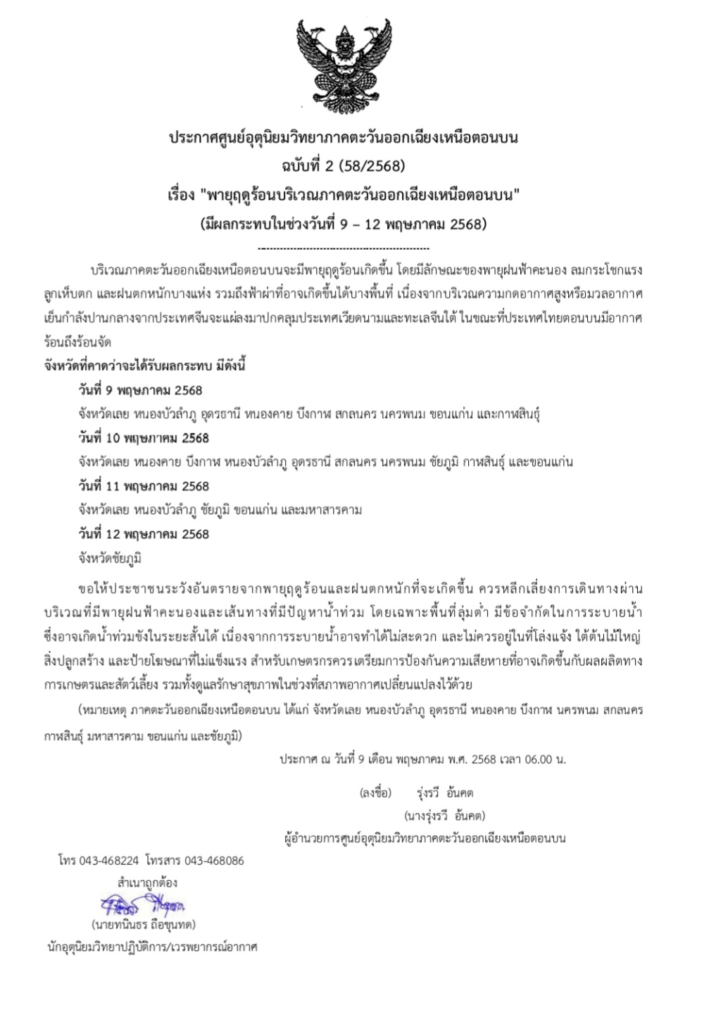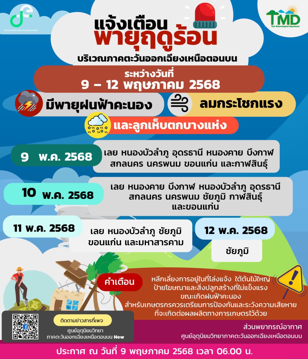 แจ้งเตือนพายุฤดูร้อน 9 พฤษภาคม 2568