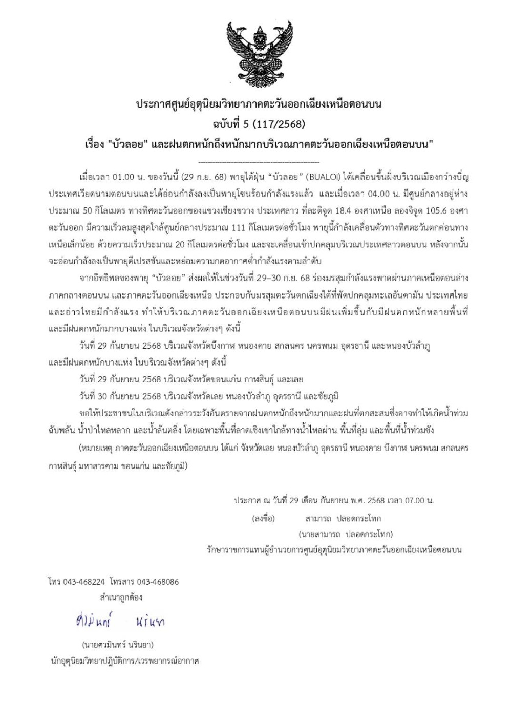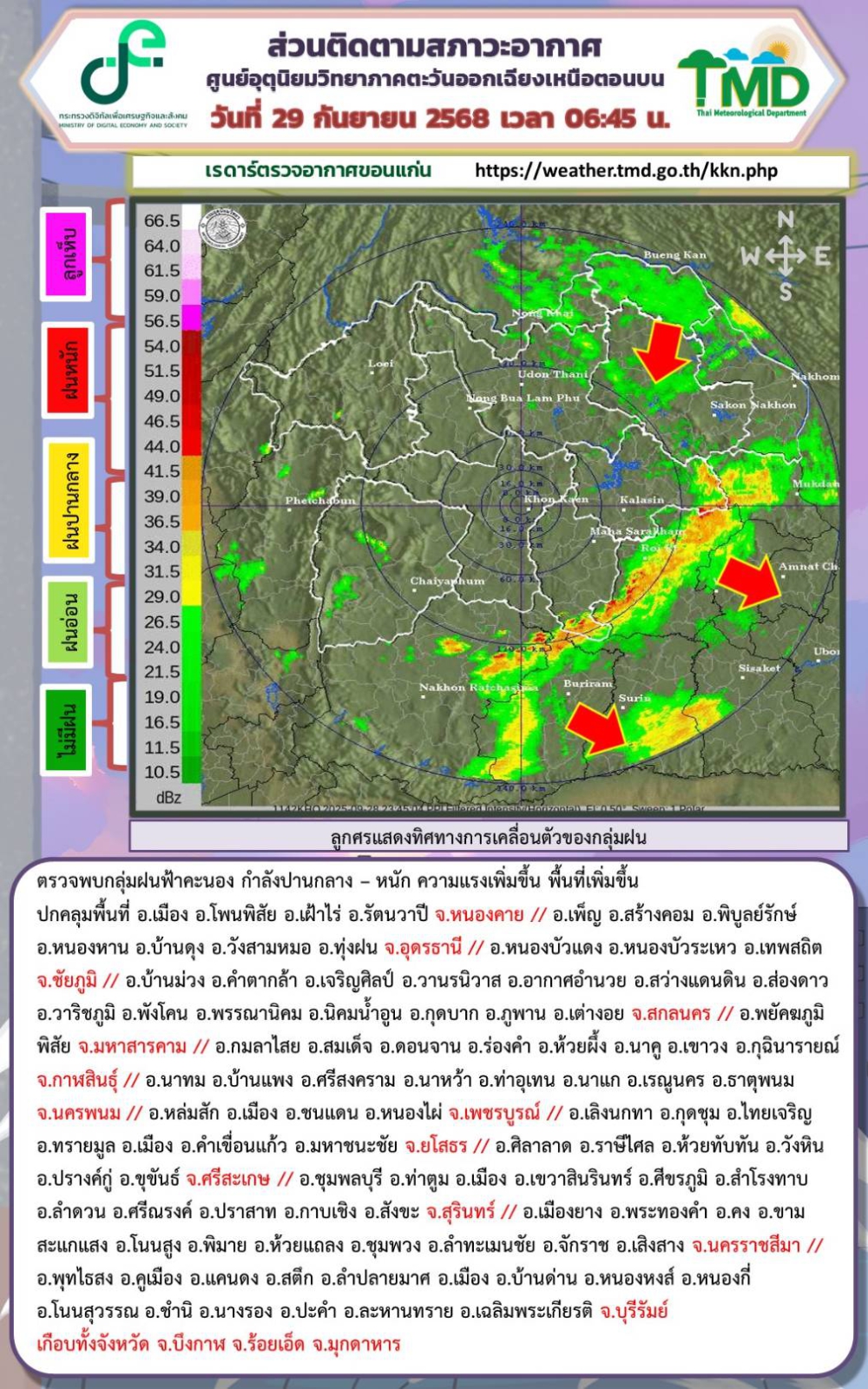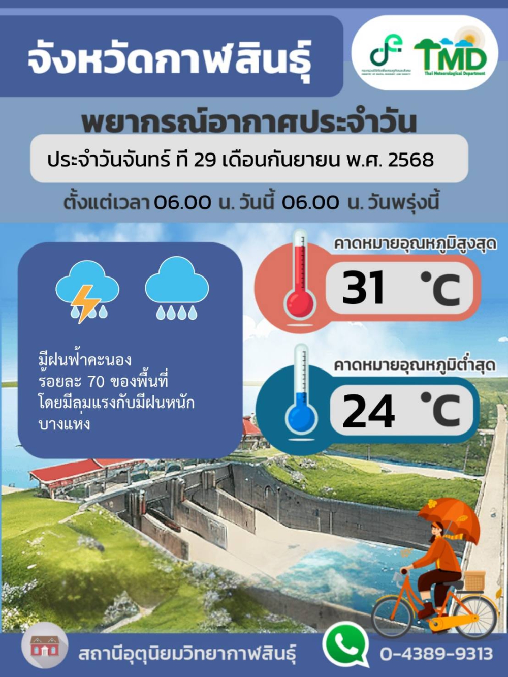 พยากรณ์อากาศจังหวัดกาฬสินธุ์ 29 กันยายน 2568