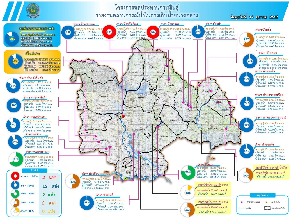 สถานการณ์น้ำจังหวัดกาฬสินธุ์ 14 ตุลาคม 2568