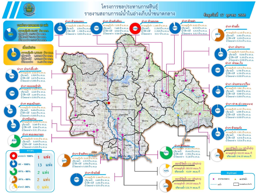สถานการณ์น้ำจังหวัดกาฬสินธุ์ 17 ตุลาคม 2568