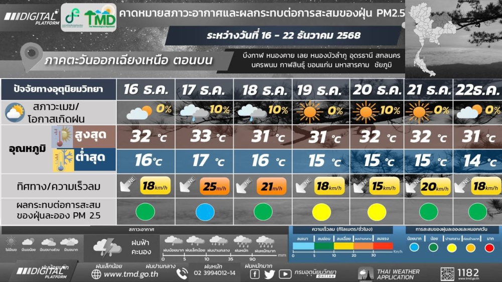 พยากรณ์อากาศจังหวัดกาฬสินธุ์ 16 ธันวาคม 2568