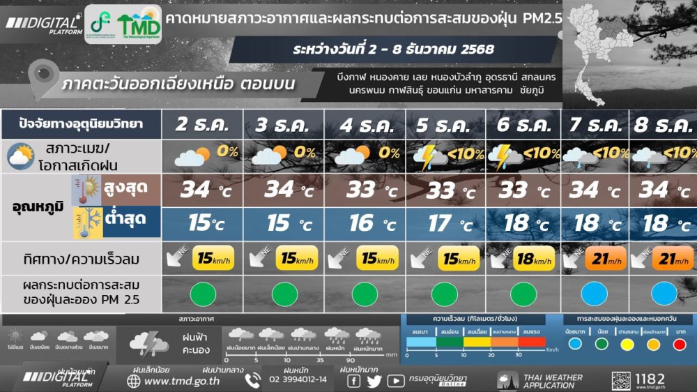 พยากรณ์อากาศจังหวัดกาฬสินธุ์ 2 ธันวาคม 2568
