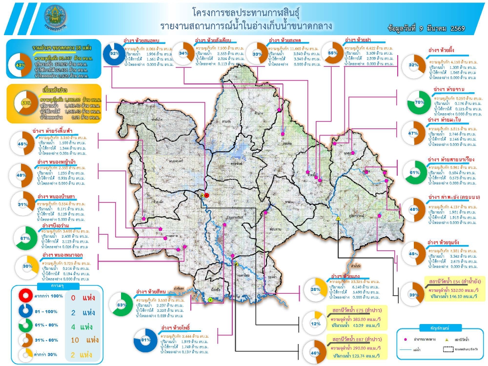สถานการณ์น้ำจังหวัดกาฬสินธุ์ 9 มีนาคม 2569