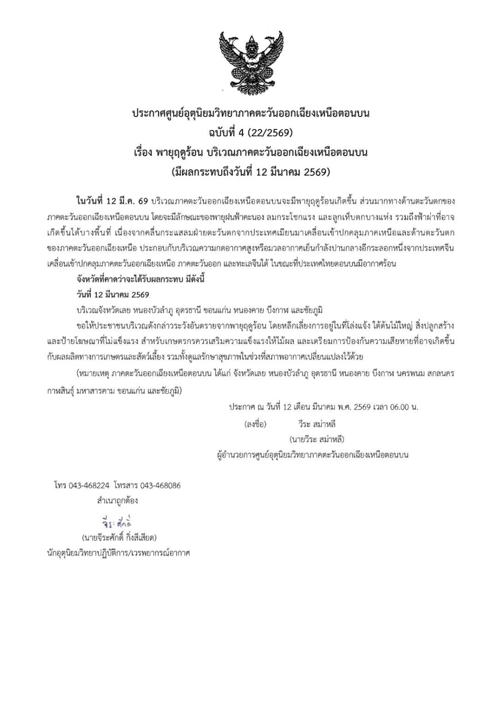 พยากรณ์อากาศจังหวัดกาฬสินธุ์ 12 มีนาคม 2569