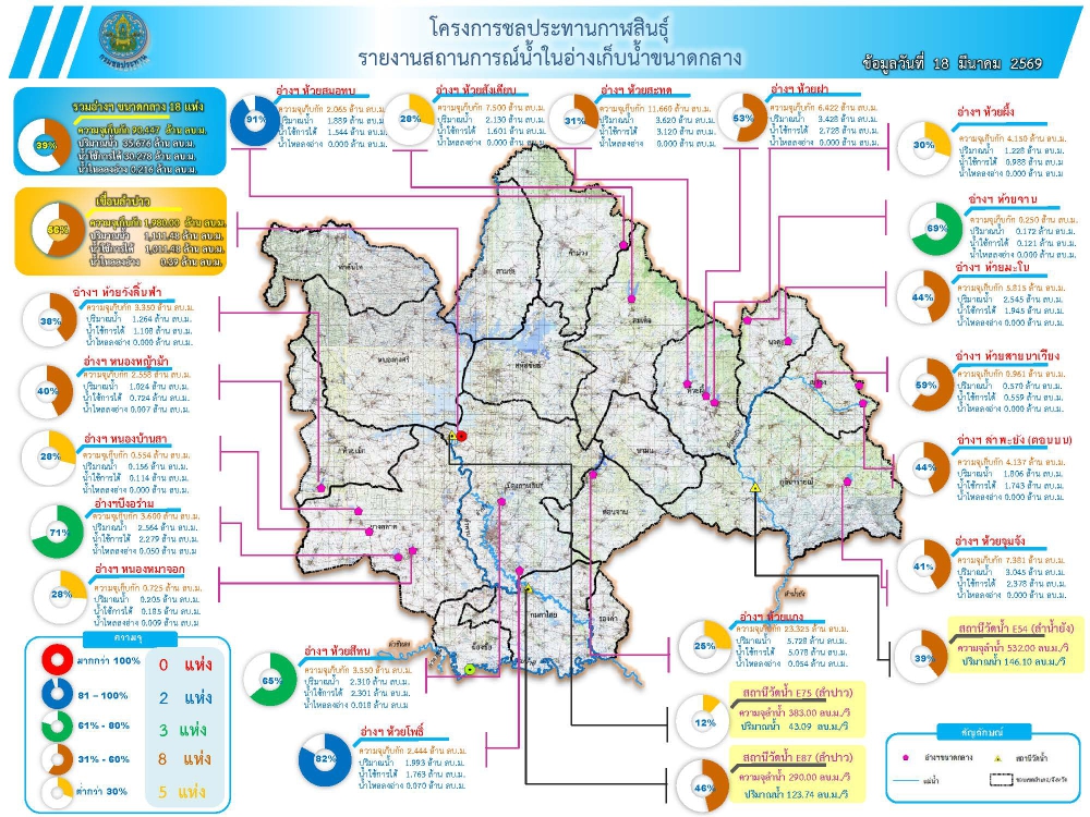 สถานการณ์น้ำจังหวัดกาฬสินธุ์ 18 มีนาคม 2569