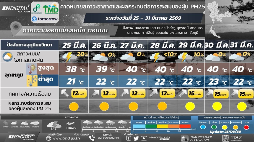 พยากรณ์อากาศ จังหวัดกาฬสินธุ์ 25 มีนาคม 2569
