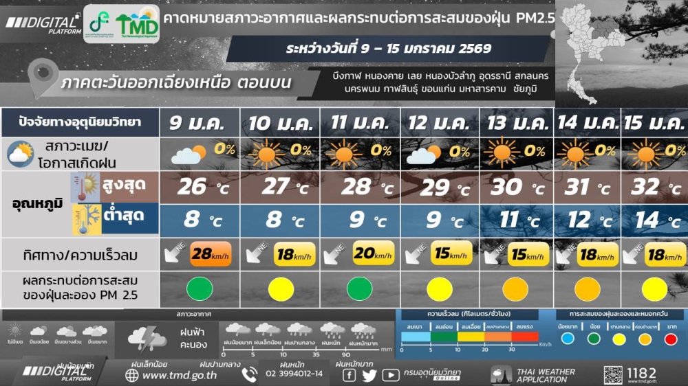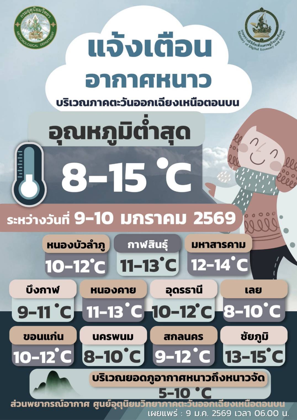 พยากรณ์อากาศจังหวัดกาฬสินธุ์ 9 มกราคม 2569