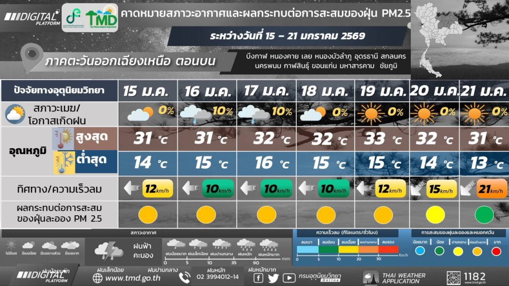 พยากรณ์อากาศจังหวัดกาฬสินธุ์ 15 มกราคม 2568