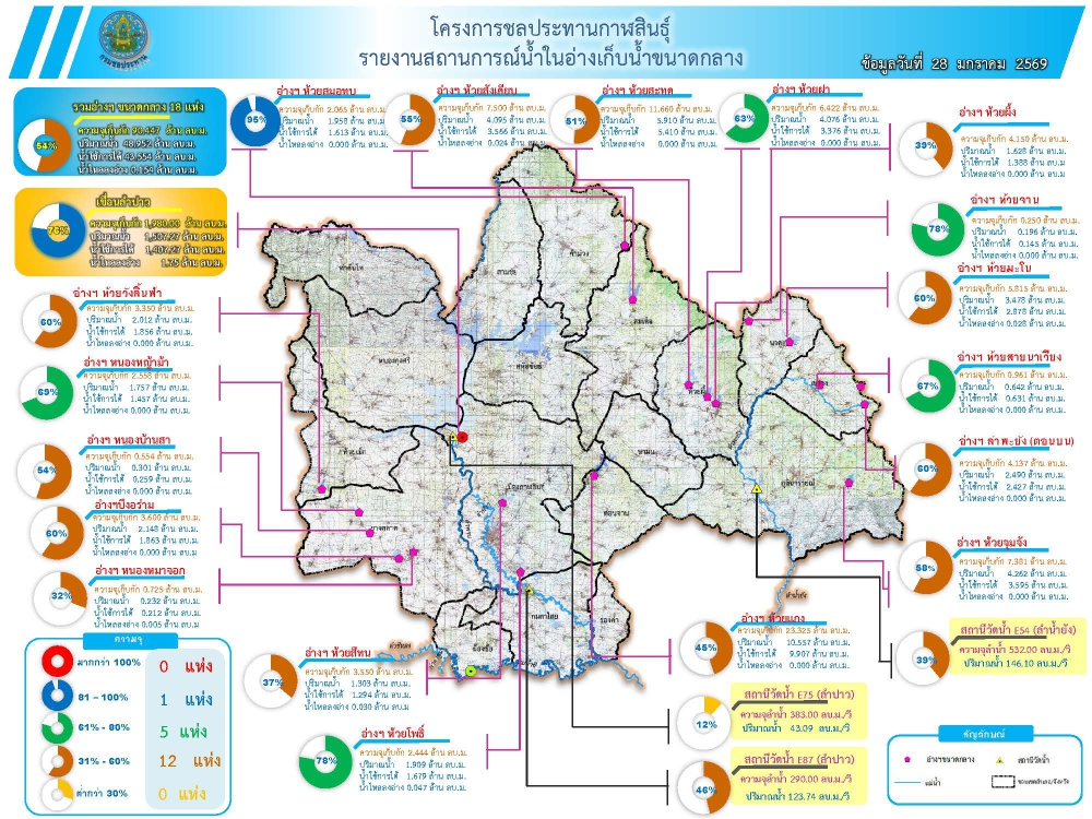 สถานการณ์น้ำจังหวัดกาฬสินธุ์ 28 มกราคม 2569