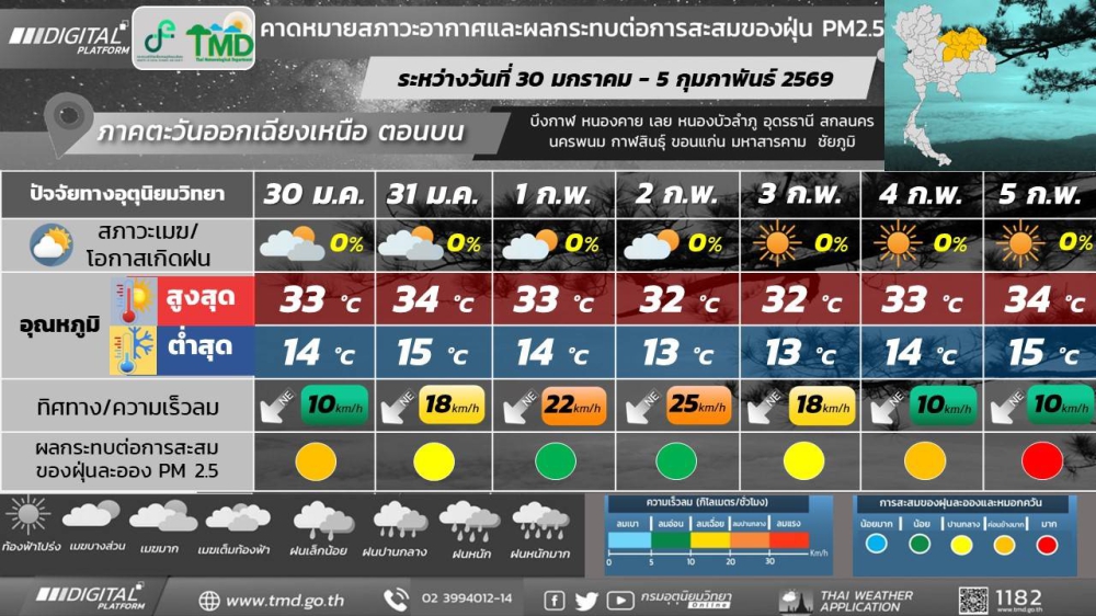 พยากรณ์อากาศจังหวัดกาฬสินธุ์ 30 มกราคม 2569