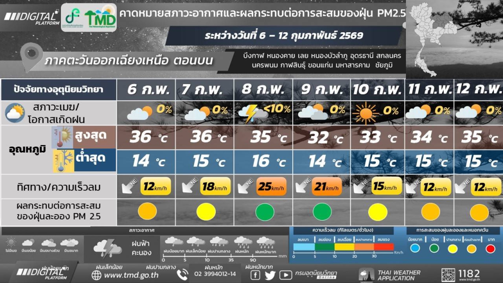พยากรณ์อากาศจังหวัดกาฬสินธุ์ 6 กุมภาพันธ์ 2569