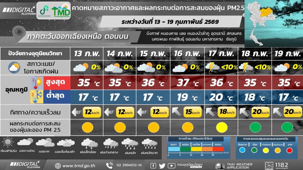 พยากรณ์อากาศจังหวัดกาฬสินธุ์ 13 กุมภาพันธ์ 2569