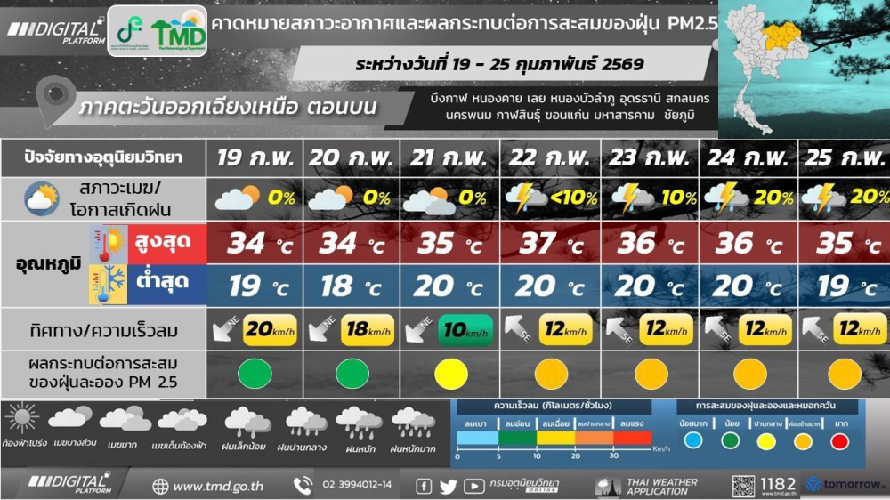 พยากรณ์อากาศจังหวัดกาฬสินธุ์ 19 กุมภาพันธ์ 2569