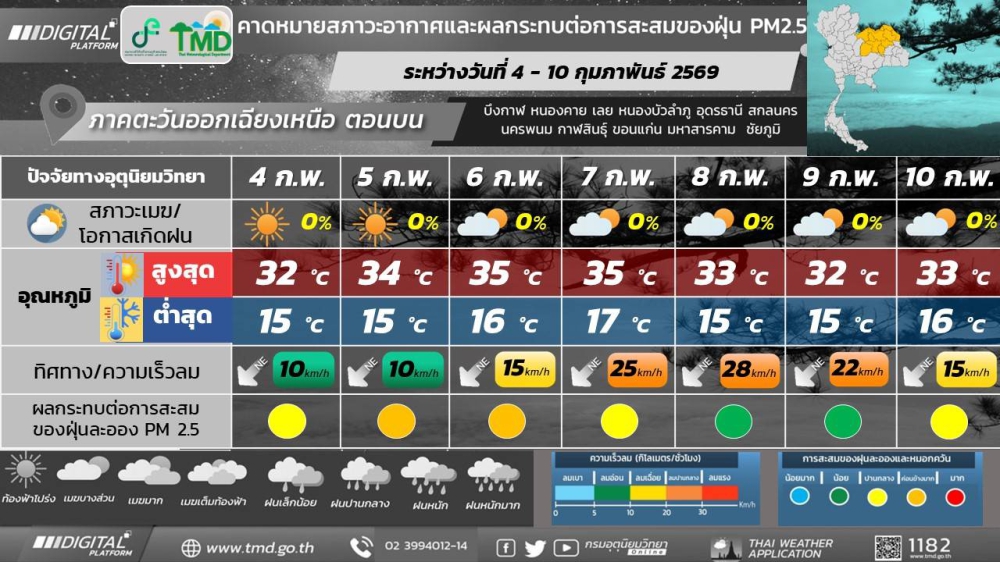 พยากรณ์อากาศจังหวัดกาฬสินธุ์ 4 กุมภาพันธ์ 2569
