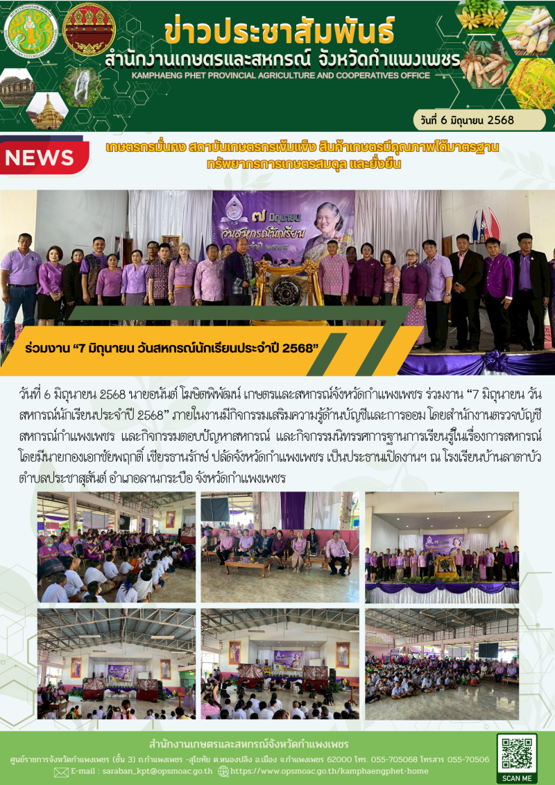 ศูนย์ติดตามและแก้ไขปัญหาภัยพิบัติด้านเกษตรจังหวัดกำแพงเพชร ประจำวันที่ 8 ธันวาคม 2568