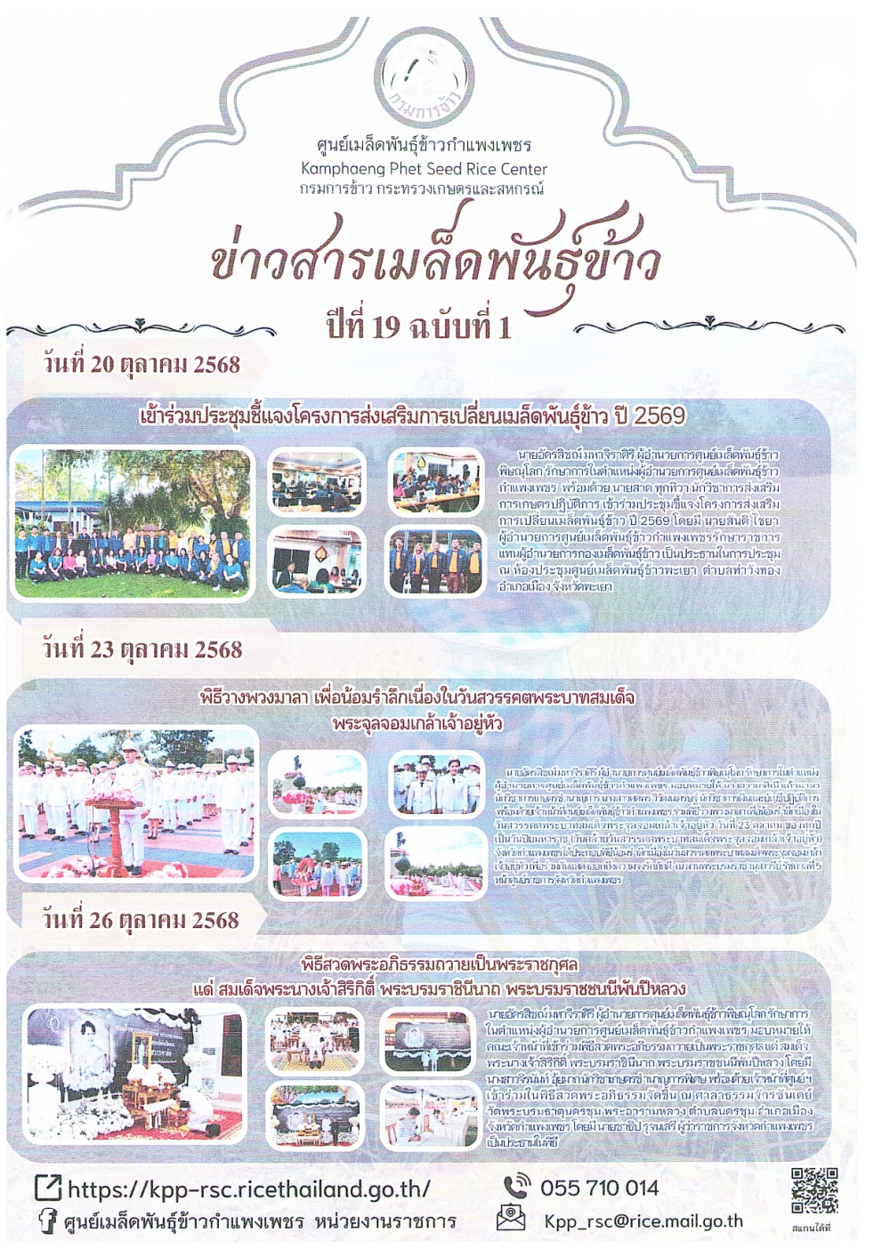 ข่าวสารเมล็ดพันธุ์ข้าว ปีที่ 19 ฉบับที่ 1 ประจำเดือนกันยายน 2568