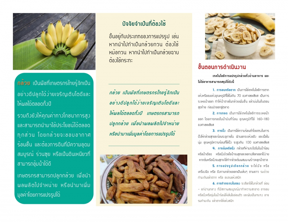 แผ่นพับเผยแพร่ข้อมูลความรู้ด้านการเกษตร เรื่อง "การแปรรูปกล้วย"
