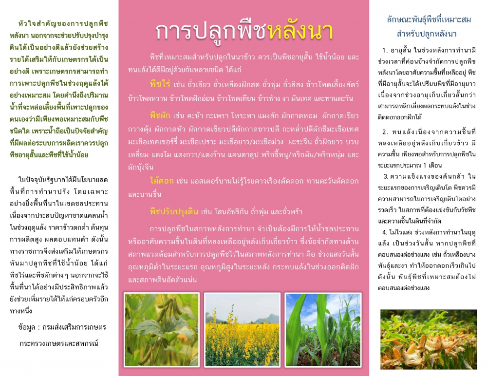 แผ่นพับด้านการเกษตร "การปลูกพืชหลังนา"