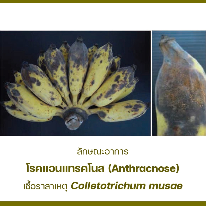 โรคแอนแทรคโนส (Anthracnose) ในกล้วย เกิดจากเชื้อราสาเหตุ Colletotichum musae