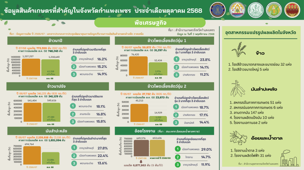 ข้อมูลสินค้าเกษตรที่สำคัญในจังหวัดกำแพงเพชร ประจำเดือนตุลาคม 2568
