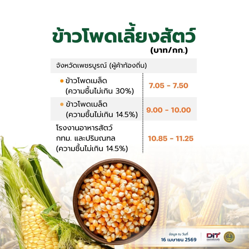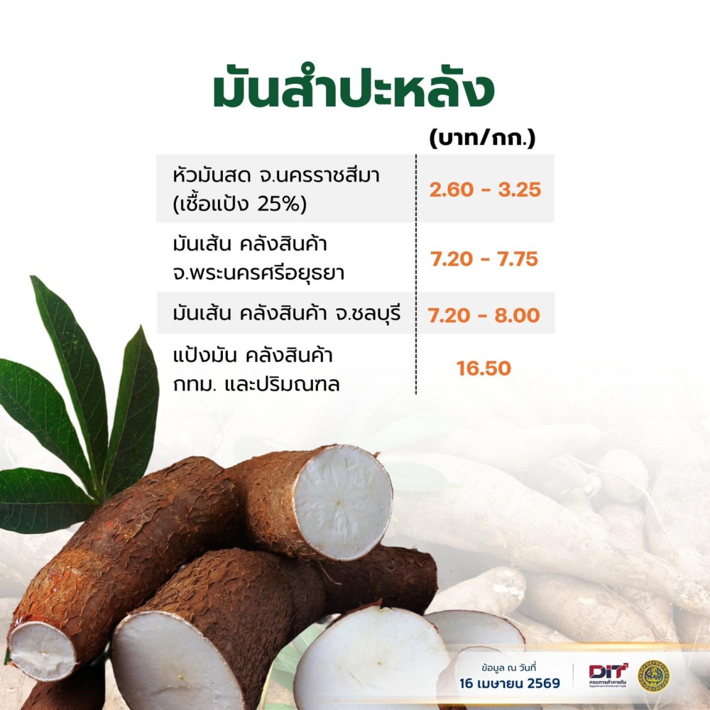 ราคาสินค้าเกษตร ประจำวันที่ 16 เมษายน 2569