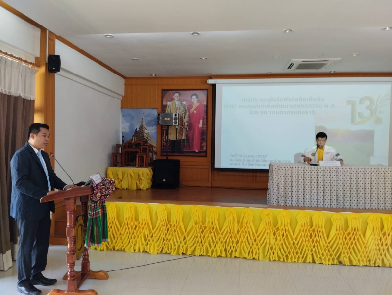 วันที่ 14 มิถุนายน 2567 ดร.สมศักดิ์ วิวิธเกยูรวงศ์ เกษตรและสหกรณ์จังหวัดขอนแก่น เป็นประธานในพิธีเปิดการประชุมรับฟังข้อคิดเห็นต่อ (ร่าง) แผนแม่บทพัฒนาเกษตรกรรม ให้เกษตรกรร่วมกันคิด วิเคราะห์ หาทางออก แก้ไขและกำหนดแนวทางตอบสนองความต้องการ