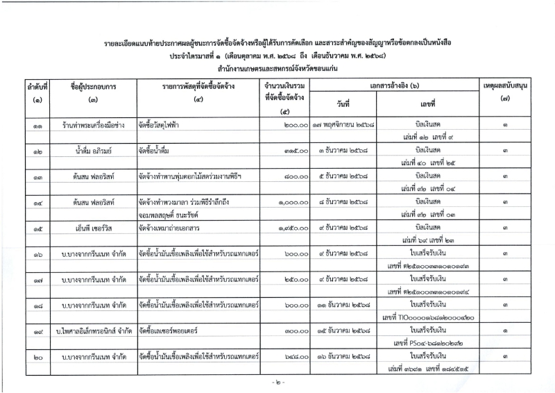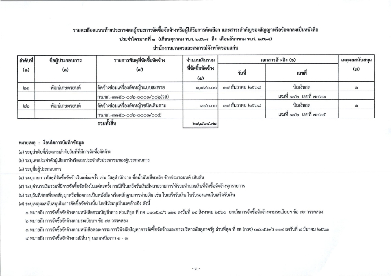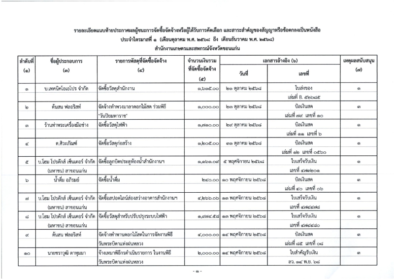 ประกาศผลผู้ชนะการจัดซื้อจัดจ้างหรือผู้ได้รับการคัดเลือกและสาระสำคัญของสัญญาหรือข้อตกลงเป็นหนังสือ ประจำไตรมาสที่ 1