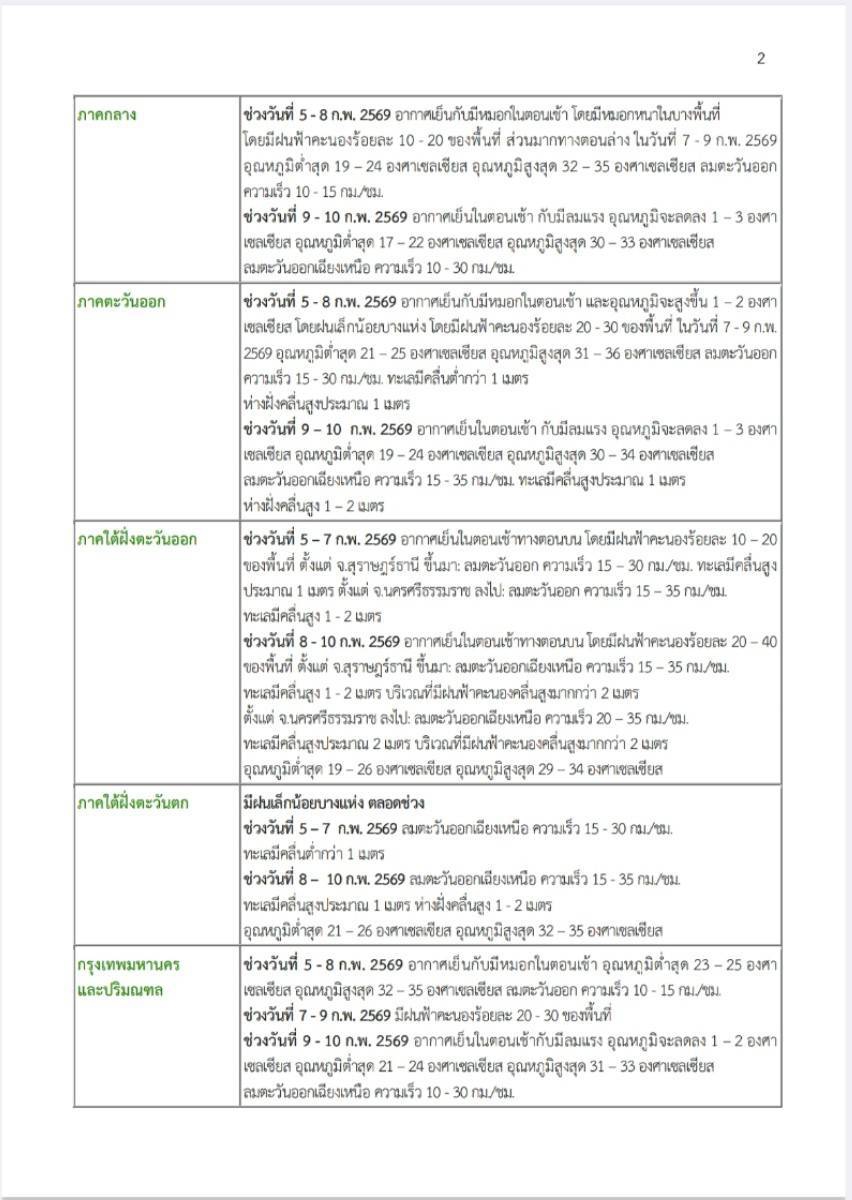 คาดหมายสภาพอากาศ 7 วันข้างหน้า ระหว่างวันที่ 4 - 10 กุมภาพันธ์ พ.ศ. 2569
