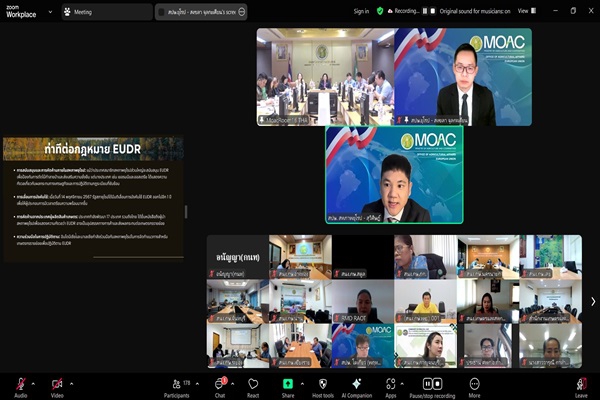 วันที่ 14 มีนาคม 2568 เวลา 09.00 น. นางอมราพร ชีพสมุทร์ ผู้อำนวยการกองนโยบายเทคโนโลยีเพื่อการเกษตรและเกษตรกรรมยั่งยืน กล่าวเปิดโครงการสัมมนาแลกเปลี่ยนเรียนรู้ ภายใต้กิจกรรมชุมชนนักปฏิบัติ (Community of Practice : CoP) เรื่อง การผลิตสินค้าเกษตรที่เป็นมิตรกับสิ่งแวดล้อมและมาตรการทางด้านสิ่งแวดล้อมที่เกี่ยวข้องกับสินค้าเกษตร : ข้อกฎหมายด้านการนำเข้าสินค้าที่มีส่วนในการตัดไม้ทำลายป่า(EU Deforestation Regulation : EUDR) โดยการสัมมนาฯแลกเปลี่ยนในครั้งนี้ มีการบรรยาย โดยนางสาวอิสราวัลย์ ธนาสินสิริ สำนักงานมาตรฐานสินค้าเกษตรและอาหารแห่งชาติ หัวข้อ"มาตรการทางด้านสิ่งแวดล้อมที่เกี่ยวข้องกับสินค้าเกษตร ข้อกฎหมายด้านการนำเข้าสินค้าที่มีส่วนในการตัดไม้ทำลายป่า" และการเสวนา ในประเด็น "แนวทางการผลิตที่เป็นมิตรกับสิ่งแวดล้อมและการปรับตัวเพื่อรองรับข้อกฎหมายด้านการนำเข้าสินค้าที่มีส่วนในการตัดไม้ทำลายป่า โดยวิทยากร นายสงขลา จุลกะเศียน (ฝ่ายเกษตร) สำนักงานที่ปรึกษาการเกษตรต่างประเทศ ประจำสหภาพยุโรป นางบุณยนุช ศรีบุญแก้ว นักวิเคราะห์นโยบายและแผน 7 ฝ่ายเศรษฐกิจยาง การยางแห่งประเทศไทย และนายสุมิตร ศรีวิสุทธิ์ ประธานศูนย์เรียนรู้การเพิ่มประสิทธิภาพการผลิตสินค้าเกษตร ด้านยางพารา จังหวัดนครศรีธรรมราช โดยผู้เข้าร่วมสัมมนาฯ ประกอบด้วย หน่วยงานในสังกัดสำนักงานปลัดกระทรวงเกษตรและสหกรณ์ และผู้ที่สนใจ ณ ห้องประชุมกระทรวงเกษตรและสหกรณ์(134) และผ่านระบบ Zoom