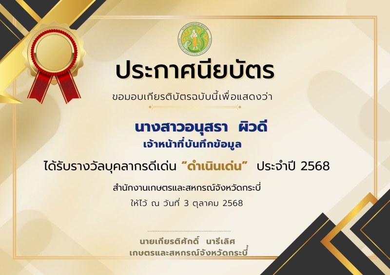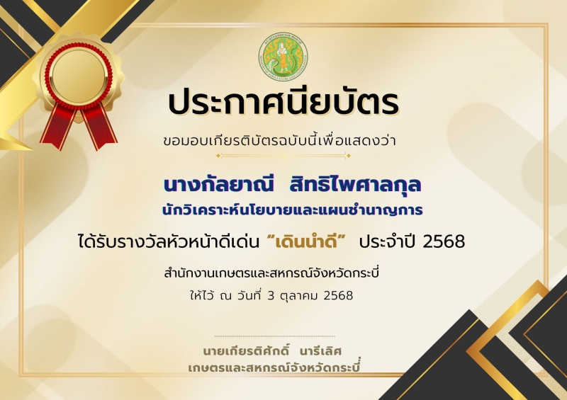ประกาศผลกิจกรรม "เดินนําดี ดําเนินเด่น Award" ประจําปีงบประมาณ พ.ศ. 2568