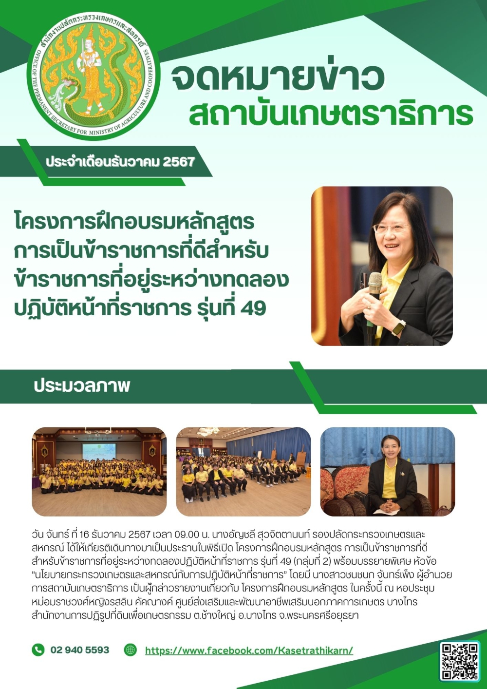 จดหมายข่าวสถาบันเกษตราธิการ ประจำเดือนธันวาคม 2567