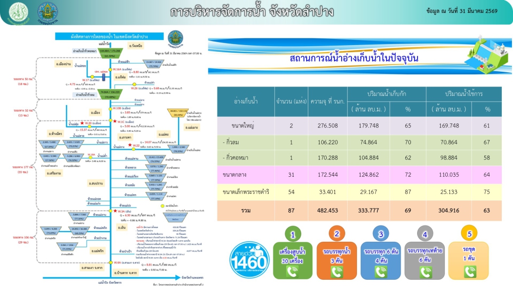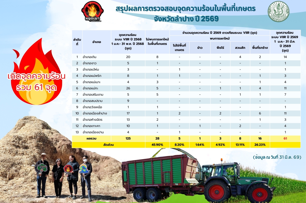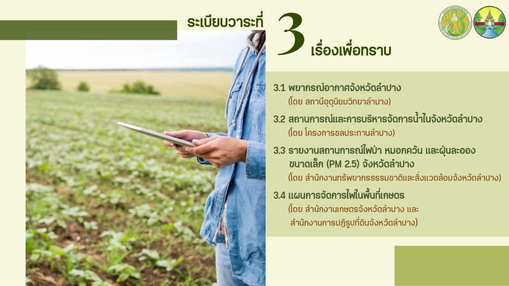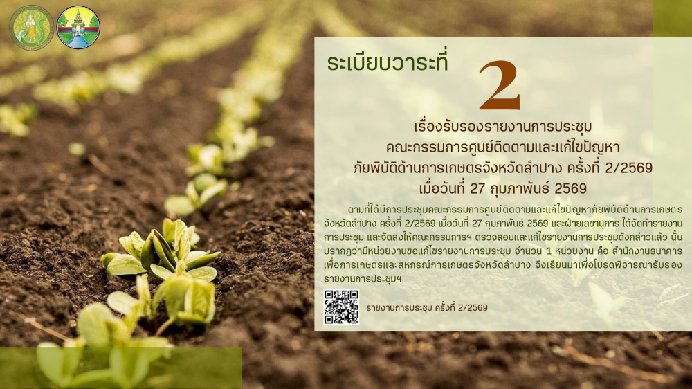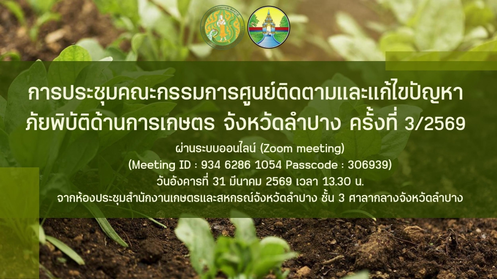 วันอังคารที่ 31 มีนาคม 2569 เวลา 13.30 น. ดร. พรเทพ ศรีธนาธร ผู้ตรวจราชการกระทรวงเกษตรและสหกรณ์ เขต 15 เป็นประธานการประชุมคณะกรรมการศูนย์ติดตามและแก้ไขปัญหาภัยพิบัติด้านการเกษตร จังหวัดลำปาง ครั้งที่ 3/2569 ผ่านระบบ Zoom Meeting เพื่อมอบนโยบาย และแนวทางการลดปัญหาฝุ่นละอองขนาดเล็ก (PM2.5) ที่เกิดขึ้นจากภาคเกษตร และแสดงห่วงใยสุขภาพของประชาชนในพื้นที่จังหวัดลำปางและภาคเหนือ พร้อมทั้งติดตามสถานการณ์การเกิดไฟป่า หมอกควันในพื้นที่จังหวัดลำปาง โดยเน้นย้ำให้หน่วยงานกระทรวงเกษตรและสหกรณ์จังหวัดลำปาง ร่วมบูรณาการแก้ไขปัญหาการเผาในพื้นที่เกษตรร่วมกับจังหวัดลำปาง เพื่อลดการเกิดฝุ่นละอองขนาดเล็ก (Pm2.5) ในการนี้ นายจิตติศักดิ์ ศรีปัญญา เกษตรและสหกรณ์จังหวัดลำปาง หัวหน้าส่วนราชการ และผู้แทนหัวหน้าส่วนราชการที่เกี่ยวข้อง ได้รายงานข้อมูลการพยากรณ์อากาศจังหวัดลำปาง สถานการณ์และการบริหารจัดการน้ำในจังหวัดลำปาง รายงานสถานการณ์ไฟป่า หมอกควัน และฝุ่นละอองขนาดเล็ก PM 2.5 จังหวัดลำปาง แผนการจัดการไฟในพื้นที่เกษตร และมาตรการรับมือสถานการณ์ไฟป่า หมอกควัน และฝุ่นละออง ปี 2569 ของจังหวัดลำปาง ทั้งนี้ เกษตรและสหกรณ์จังหวัดลำปาง ได้แจ้งคำสั่งแต่งตั้งคณะทำงานศูนย์บริหารและติดตามสถานการณ์ด้านพลังงานจังหวัดลำปาง ที่มีรองผู้ว่าราชการจังหวัดลำปาง เป็นหัวหน้าคณะทำงาน มีเกษตรและสหกรณ์จังหวัดลำปาง เกษตรจังหวัดลำปาง และหน่วยงานที่เกี่ยวข้องเป็นคณะทำงาน ปัจจุบัน สถานการณ์ผลกระทบด้านการเกษตรของจังหวัดลำปาง มีแนวโน้มจะได้รับผลกระทบด้านพืช จากการใช้น้ำมันเชื้อเพลิง ปุ๋ยเคมี และสารเคมีกำจัดวัชพืช ซึ่งจะเกิดผลกระทบในระยะเวลาอันใกล้คือ การเก็บเกี่ยวผลผลิตทางการเกษตร ได้แก่ ข้าวนาปรัง ข้าวโพดเลี้ยงสัตว์ และมันสำปะหลัง การใช้น้ำในไม้ผลและไม้ยืนต้น การเตรียมการเพาะปลูกในฤดูกาลผลิตถัดไปของข้าวนาปี และมันสำปะหลัง การขนส่งผลผลิตทางการเกษตรจากแหล่งเก็บเกี่ยวผลผลิตไปยังลานรวบรวม มีแนวทางการแก้ไขปัญหาคือ การบริหารจัดการเครื่องจักรกลทางการเกษตร เช่น รถเกี่ยวนวดข้าว รถไถ การบริหารจัดการปั๊มน้ำมันเชื้อเพลิงของสหกรณ์การเกษตรเพื่อจำหน่ายน้ำมันเชื้อเพลิงให้แก่เครื่องจักรกลเกษตรได้อย่างต่อเนื่อง การส่งเสริมการผลิตปุ๋ยสั่งตัด การเผยแพร่ความรู้การใช้ปุ๋ยเคมีให้ตรงกับความต้องการของพืช การส่งเสริมการทำปุ๋ยอินทรีย์ลดการใช้ปุ๋ยเคมี รวมถึงการส่งเสริมการใช้พลังงานทางเลือก เช่น ระบบสูบน้ำพลังงานแสงอาทิตย์ ณ ห้องประชุมสำนักงานเกษ