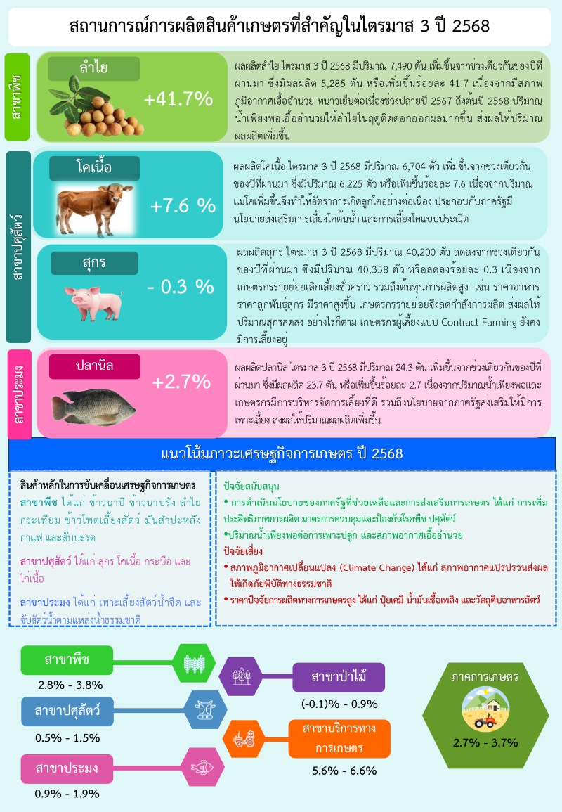 ภาวะเศรษฐกิจการเกษตร ไตรมาส 3 ปี 2568 และแนวโน้มปี 2568 จังหวัดลำปาง