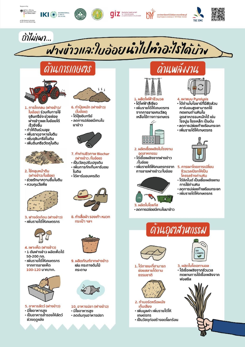 7) ไม่เผา เราได้มากกว่า ทางเลือกการใช้ประโยชน์จากฟางข้าวและใบอ้อยที่ยั่งยืน (Brochure)