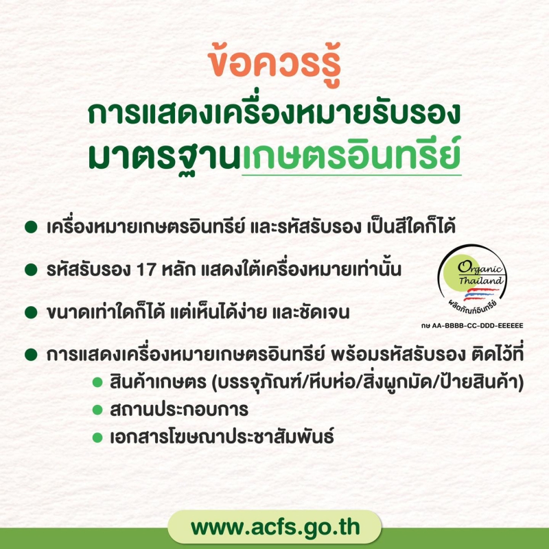 ผ่านการตรวจสอบตามมาตรฐานเกษตรอินทรีย์
