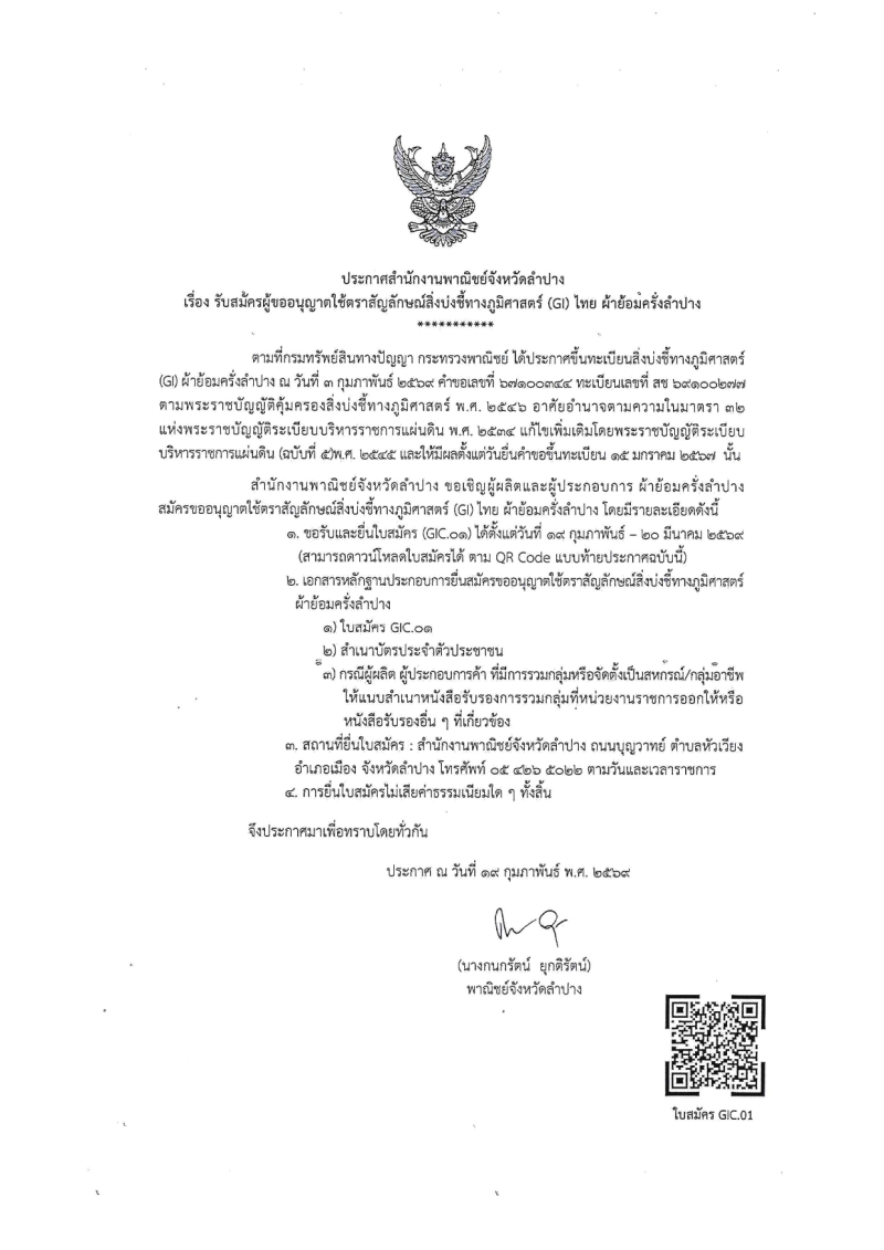 สำนักงานพาณิชย์จังหวัดลำปาง ขอเชิญผู้ผลิตและผู้ประกอบการ ผ้าย้อมครั้งลำปาง