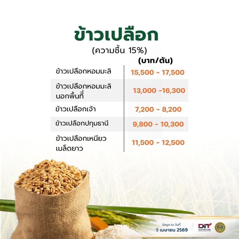 ราคาสินค้าเกษตรประจำวันที่ 9 เมษายน 2569