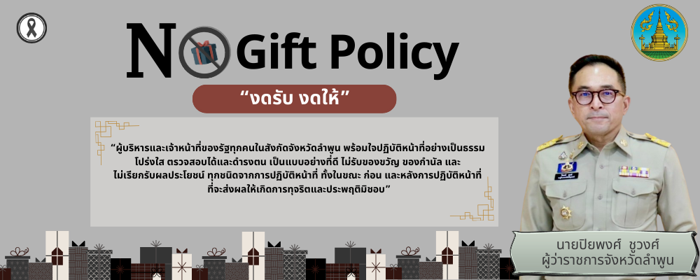 ประกาศเจตนารมณ์ เรื่อง สุจริต โปร่งใส จังหวัดลำพูน ใสสะอาด 2569 และ งดรับ งดให้ ของขวัญ ของกำนัลทุกชนิดจากการปฏิบัติหน้าที่ (No Gift Policy)