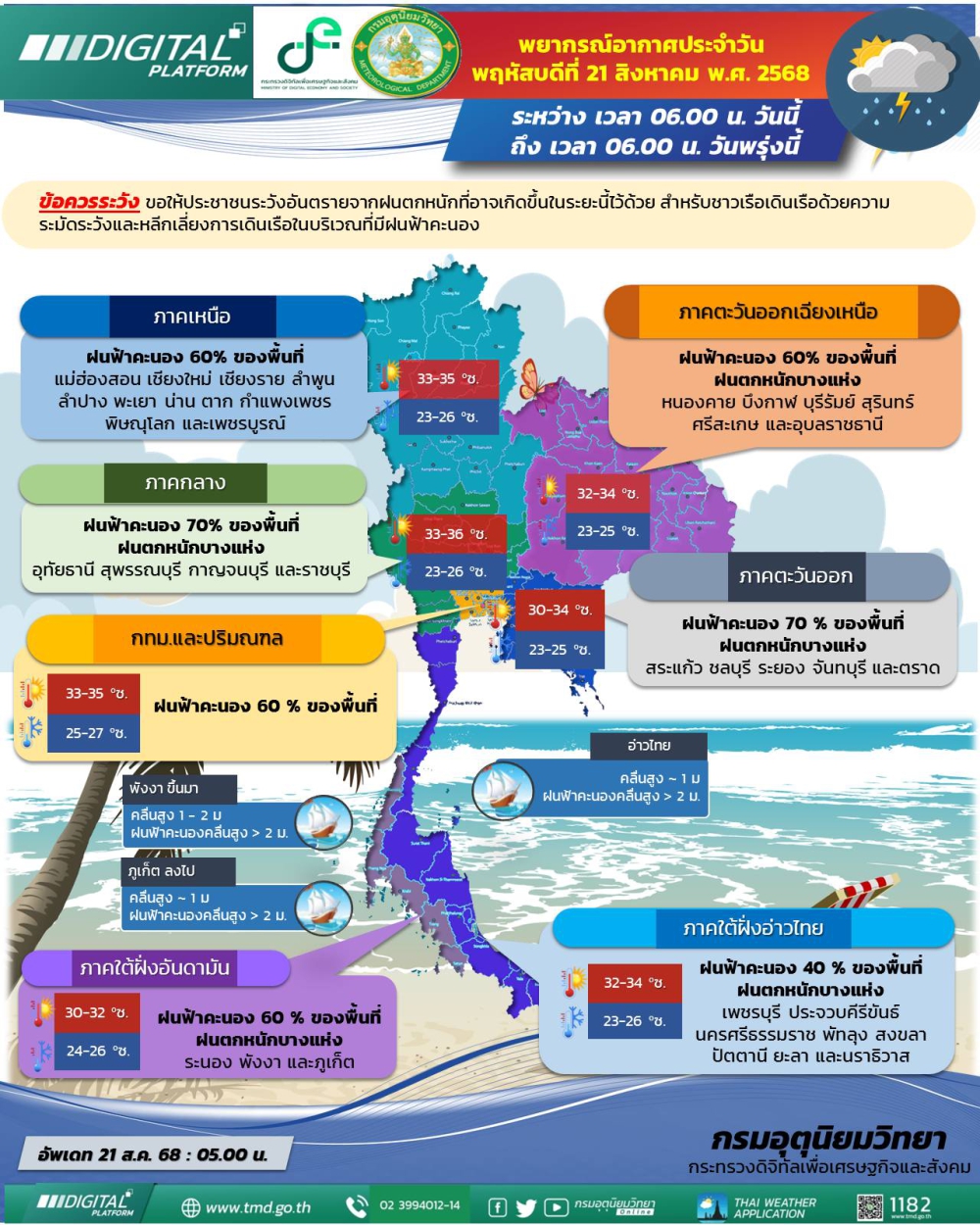 พยากรณ์อากาศประจำวันที่ 3 กันยายน 2568 ตั้งแต่เวลา 06:00 น. วันนี้ถึง 06:00 น. วันพรุ่งนี้