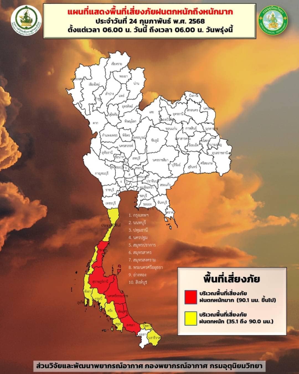 พยากรณ์อากาศ 24 ชั่วโมงข้างหน้า (24 ก.พ. 68):