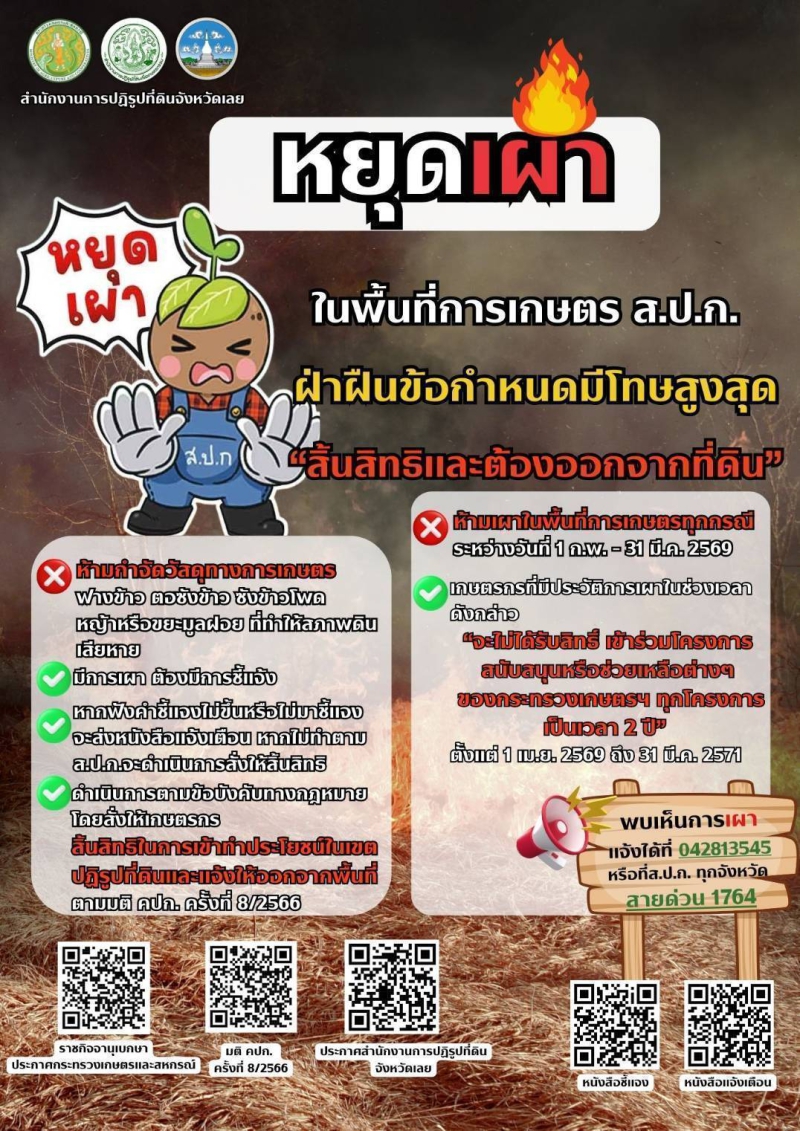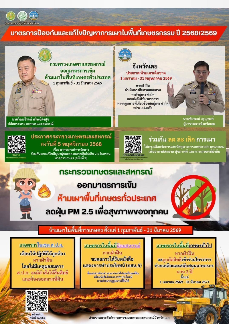 จังหวัดเลยกำหนดมาตรการ ห้ามเผาในที่โล่ง ทุกชนิดเพื่อลดปัญหามลพิษ