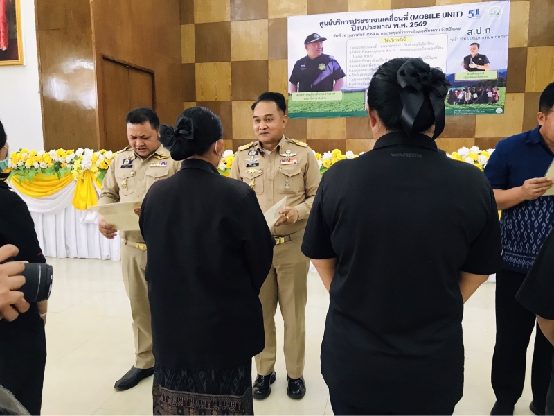 วันที่ 16 กุมภาพันธ์ 2569 เวลา 10.00 น. นายเศรษฐเกียรติ กระจ่างวงษ์ เลขาธิการสำนักงานการปฏิรูปที่ดินเพื่อเกษตรกรรม ลงพื้นที่ตรวจราชการติดตามผลการดำเนินงานกิจกรรมศูนย์บริการประชาชนเคลื่อนที่ในเขตปฏิรูปที่ดินจังหวัดเลย และมอบเอกสารสิทธิให้เข้าทำประโยชน์ในเขตปฏิรูปที่ดิน (โฉนดเพื่อการเกษตร) ให้แก่เกษตรเพื่อให้เกษตรกรผู้ที่ทำประโยชน์ตามระยะเวลาได้เข้าสู่กระบวนการปรับปรุงสิทธิจากการได้รับการจัดที่ดิน สร้างความมั่นคงด้านที่ดินให้กับเกษตรกร ให้มีทางเลือกในการเข้าถึงแหล่งเงินทุนในการประกอบอาชีพได้มากขึ้น ณ หอประชุมที่ว่าการอำเภอเชียงคาน จังหวัดเลย โดยศูนย์บริการประชาชนเคลื่อนที่ (Mobile Unit) ปีงบประมาณ 2569 มีการให้บริการประชาชน ดังนี้