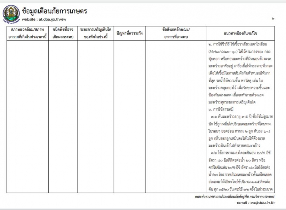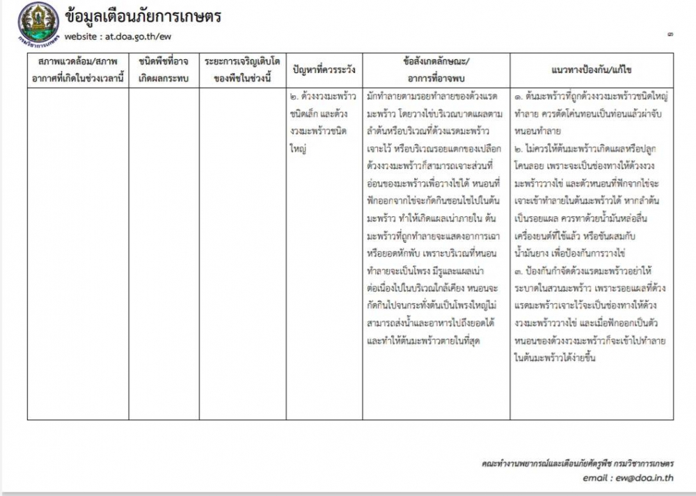 เตือนภัยการเกษตร ช่วงวันที่ ๑๖ – ๒๒ กันยายน ๒๕๖๓ พืชที่ได้รับผลกระทบ ได้แก่ มะพร้าว