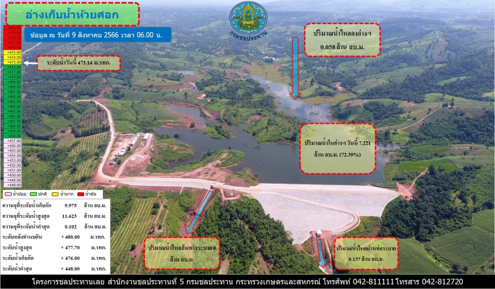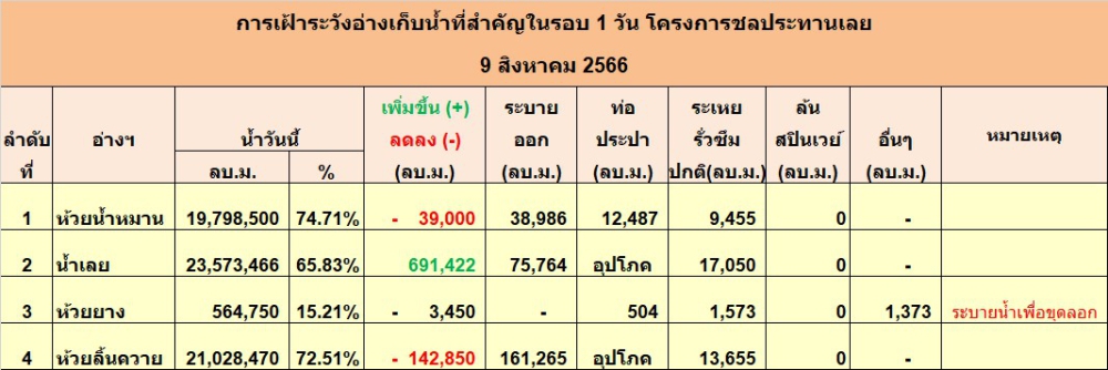 - อ่างน้ำเลย มีน้ำ 23 ล้าน ลบ.ม. (65%) แนวโน้มเพิ่มขึ้น