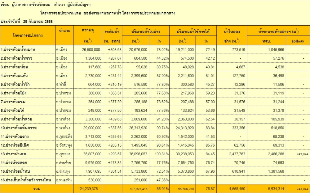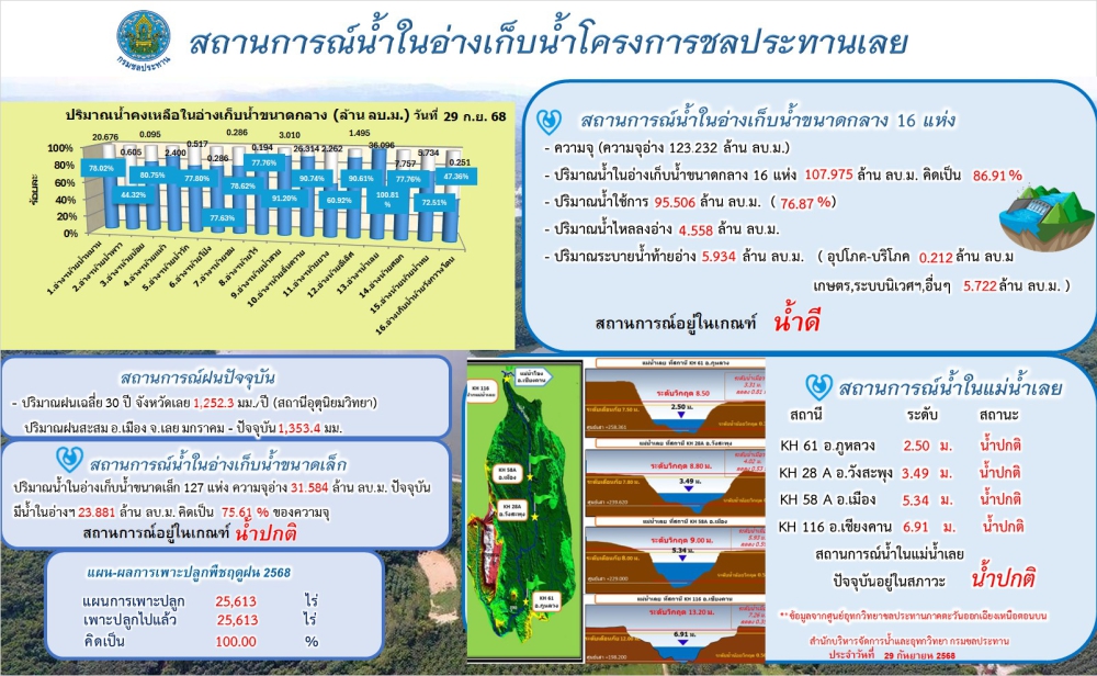 โครงการชลประทานเลย ขอสรุปภาพรวมสถานการณ์น้ำ ประจำวันที่ 29 กันยายน 2568