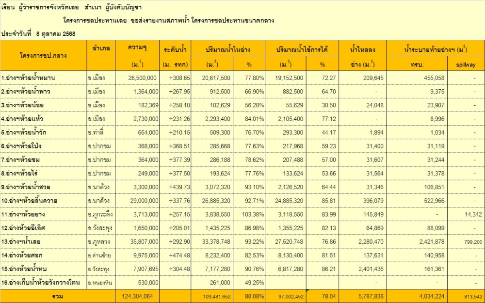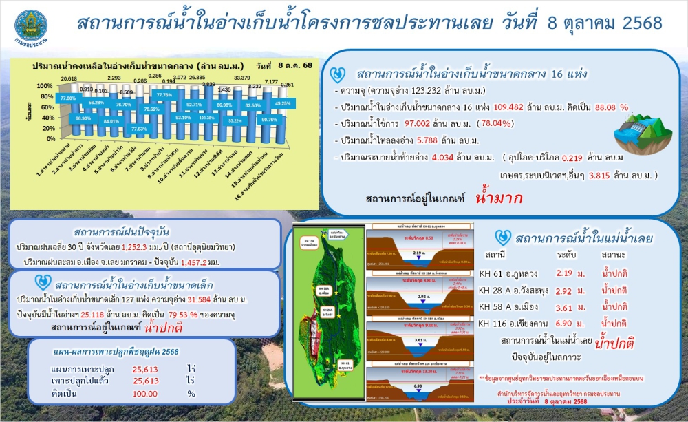 โครงการชลประทานเลย สรุปภาพรวมสถานการณ์น้ำ ประจำวันที่ 8 ตุลาคม 2568